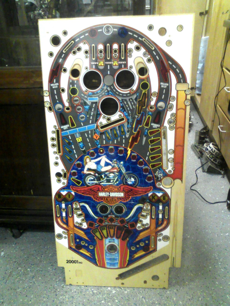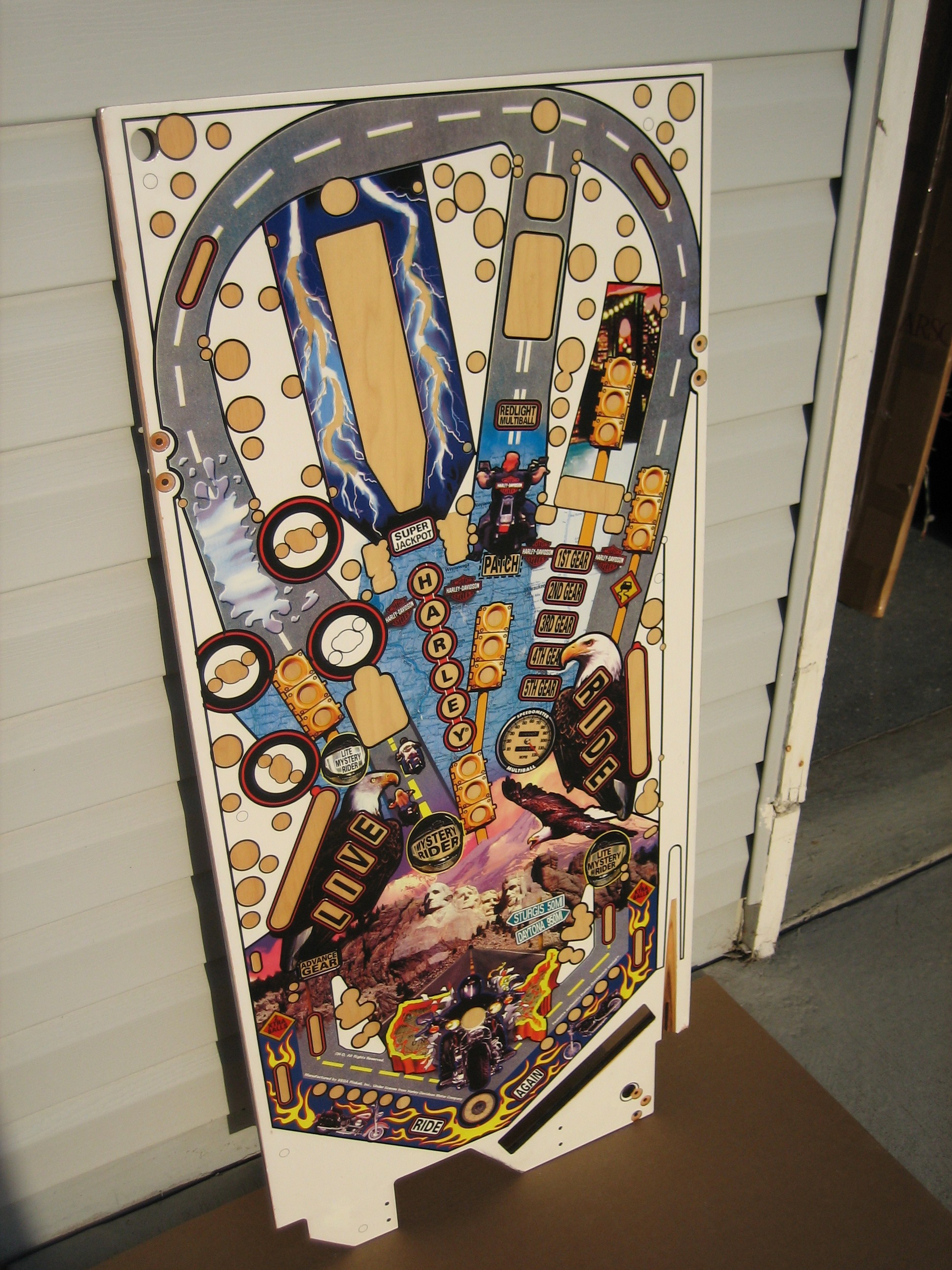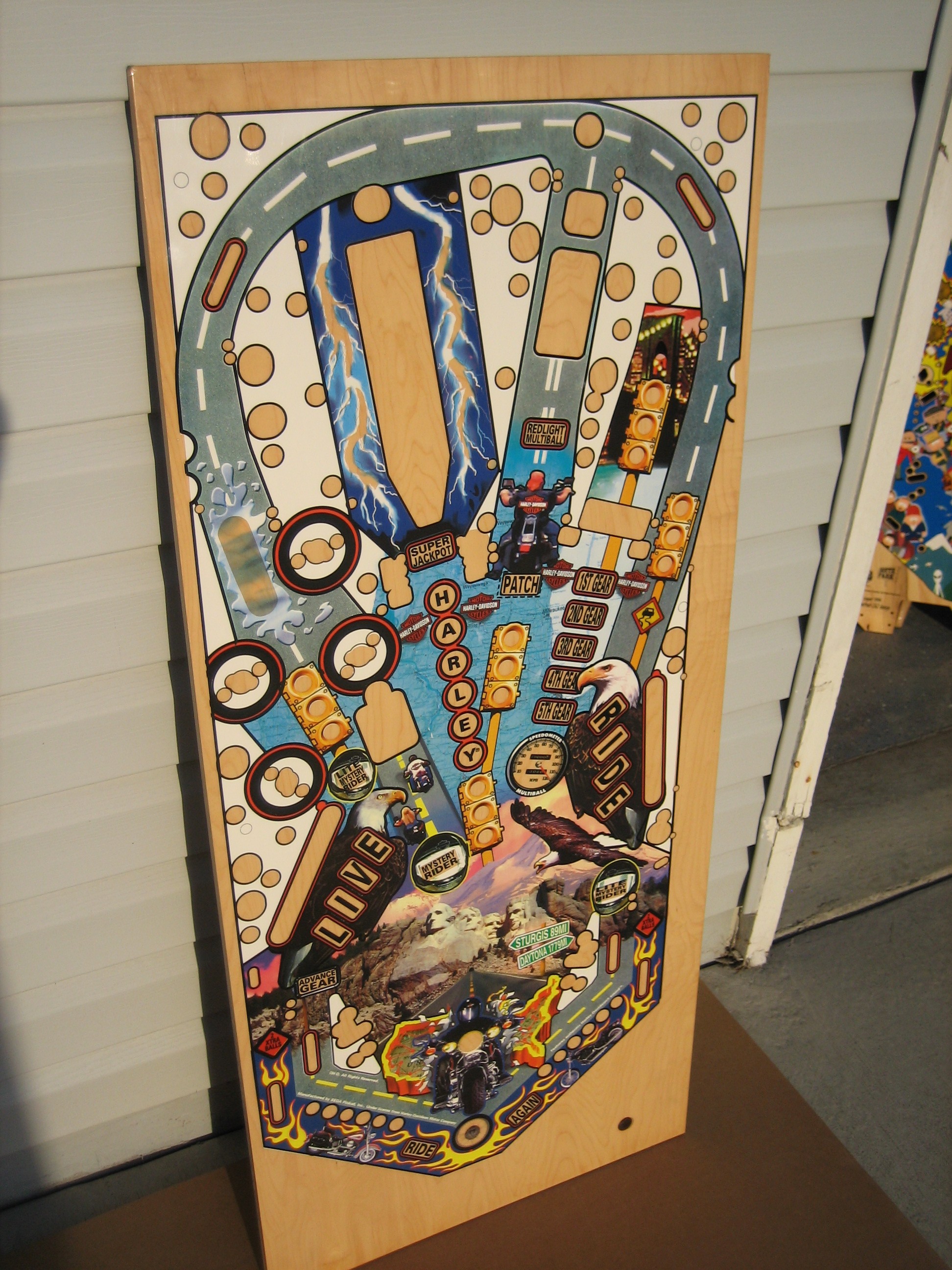 | . NOS playfield for Harley Davidson (stern) | $400 | undrilled prototype artwork sample |